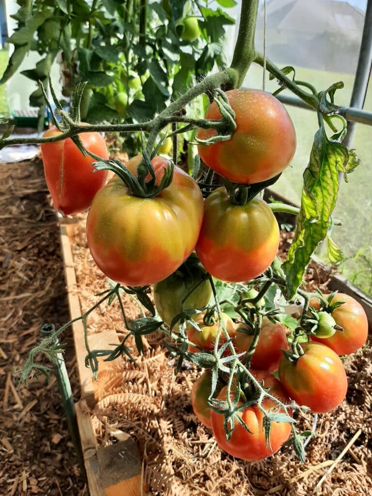 Ananas, cornue des andes, Rose de Berne, Coeur de BOEUF rouge et orange