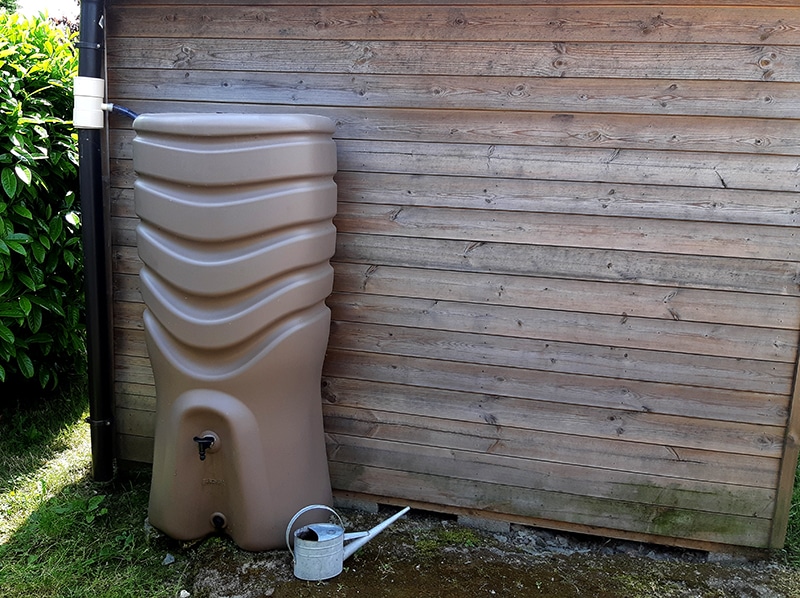 Si vous n’avez pas la chance de vivre dans une maison équipée d’un tel dispositif, vous pouvez installer un réservoir aérien de récupération d’eau de pluie.